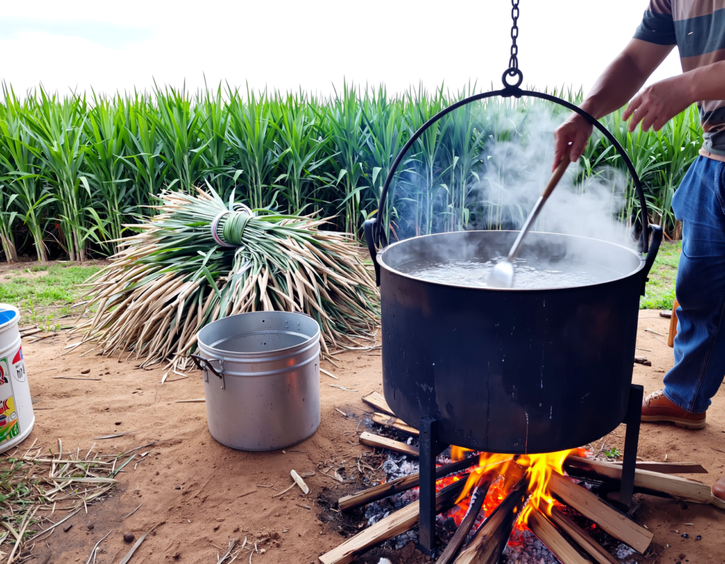 The process of making jaggery is surprisingly simple, which is one reason it retains its natural nutrients. Fresh juice from sugarcane or sap from palm trees is collected and filtered to remove impurities. The liquid is then boiled in large pans until the water evaporates and the syrup thickens into a dense caramel-like consistency.