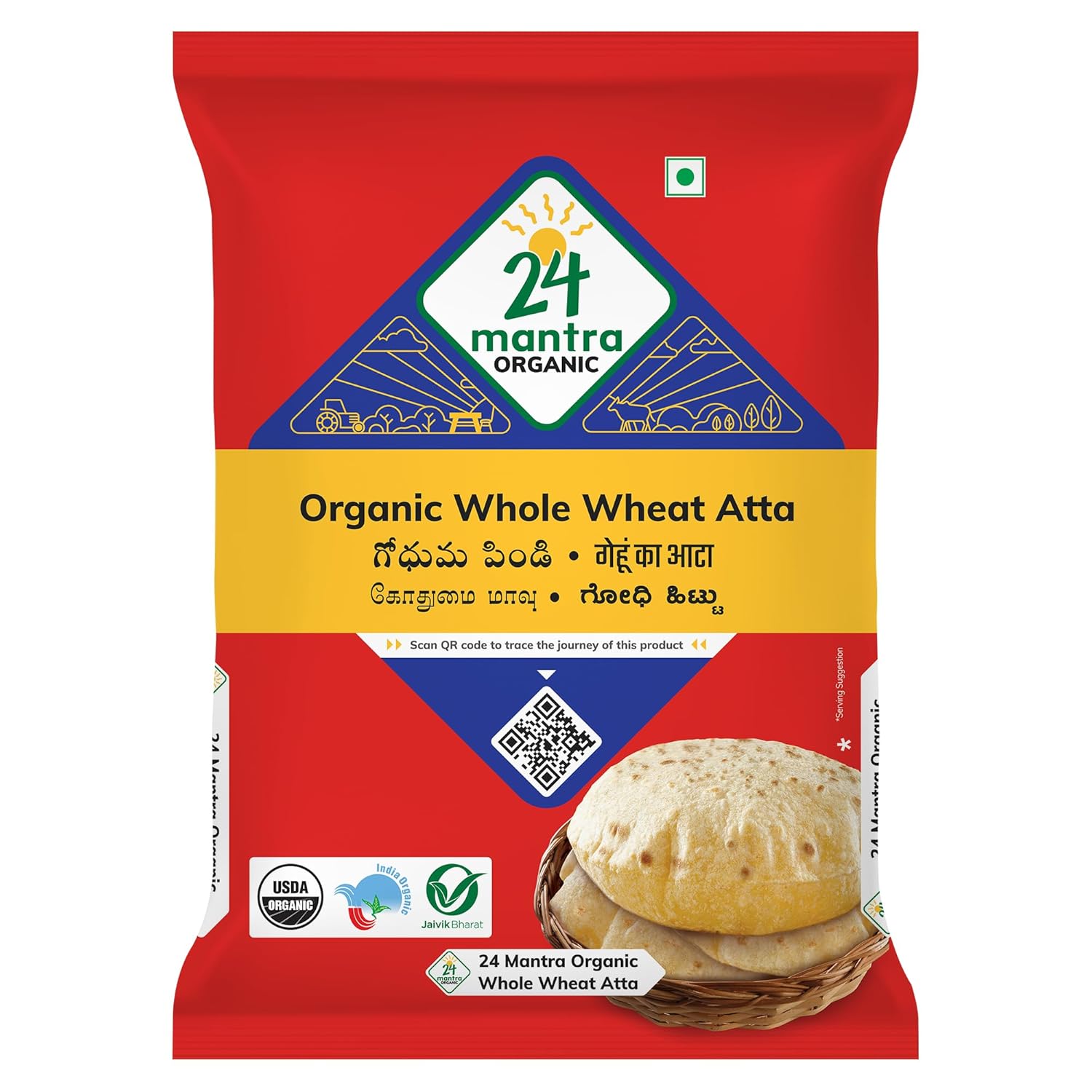 Experience the goodness of traditional milling with 24 Mantra Organic Whole Wheat Atta, made from carefully selected organic wheat and processed using the chakki grinding method to retain natural fiber, nutrients, and authentic taste.