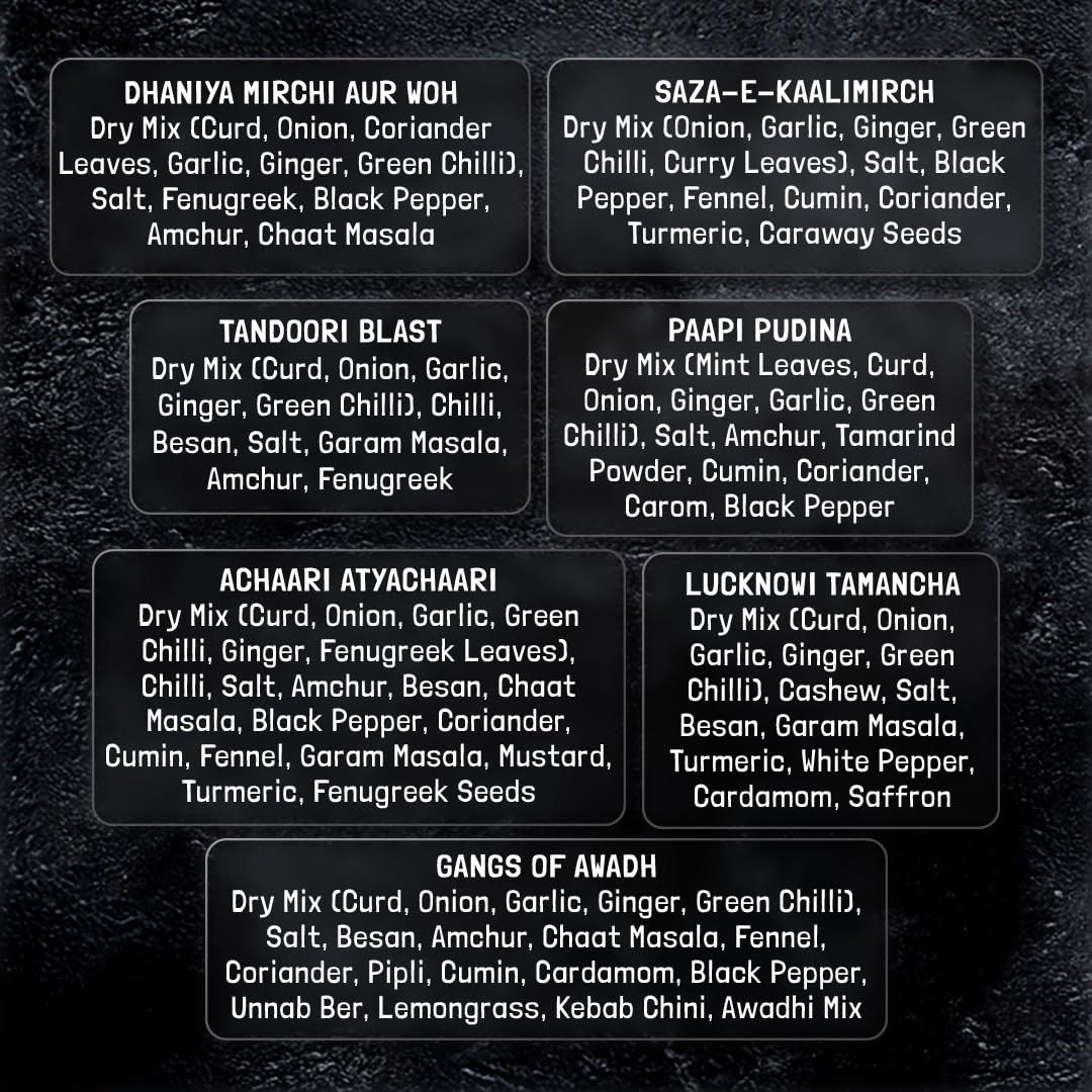 KILRR Chicken Marination Masala Variety Pack (Pack of 7) | 1-Min Instant Marinade for Tikka & Tandoori | Just Add Water & Oil | All-Natural, No Preservatives | Each Pack Marinates 250g Chicken