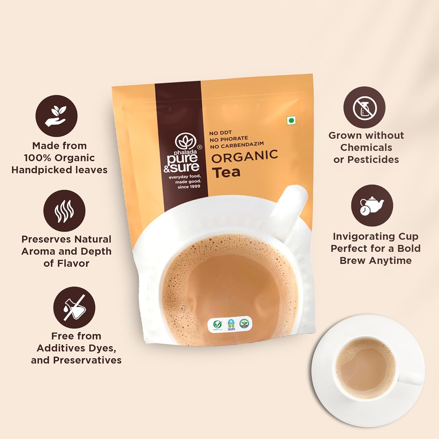 Enjoy a pure, robust cup of chai with Pure & Sure Organic Assam Tea Powder, crafted from 100% certified organic tea leaves sourced sustainably from the finest Assam tea gardens. This premium CTC chai patti is known for its bold strength, rich color, and refreshing aroma—perfect for daily Indian chai lovers.